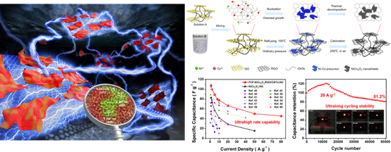 Long Zhang, Lei Dong, Mengxiong Li, Peng Wang, Jiajia Zhang, and Hongbin Lu* , Ultrahigh-rate, ultralong-life asymmetric supercapacitors based on few-crystalline, porous NiCo2O4 nanosheet composites, J. Mater. Chem. A, 2017, DOI: 10.1039/C7TA07449B. (Cover article)Link