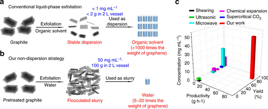 Lei Dong, Zhongxin Chen, Xiaoxu Zhao, Jianhua Ma, Shan Lin, Mengxiong Li, Yang Bao, Leiqiang Chu, Kai Leng, Hongbin Lu and Kian Ping Loh. A Non-Dispersion Strategy for Large-Scale Production of Ultra-High Concentration Graphene Slurries in Water. Nature Communications 9, 76(2018) DOI:10.1038/s41467-017-02580-3. Link